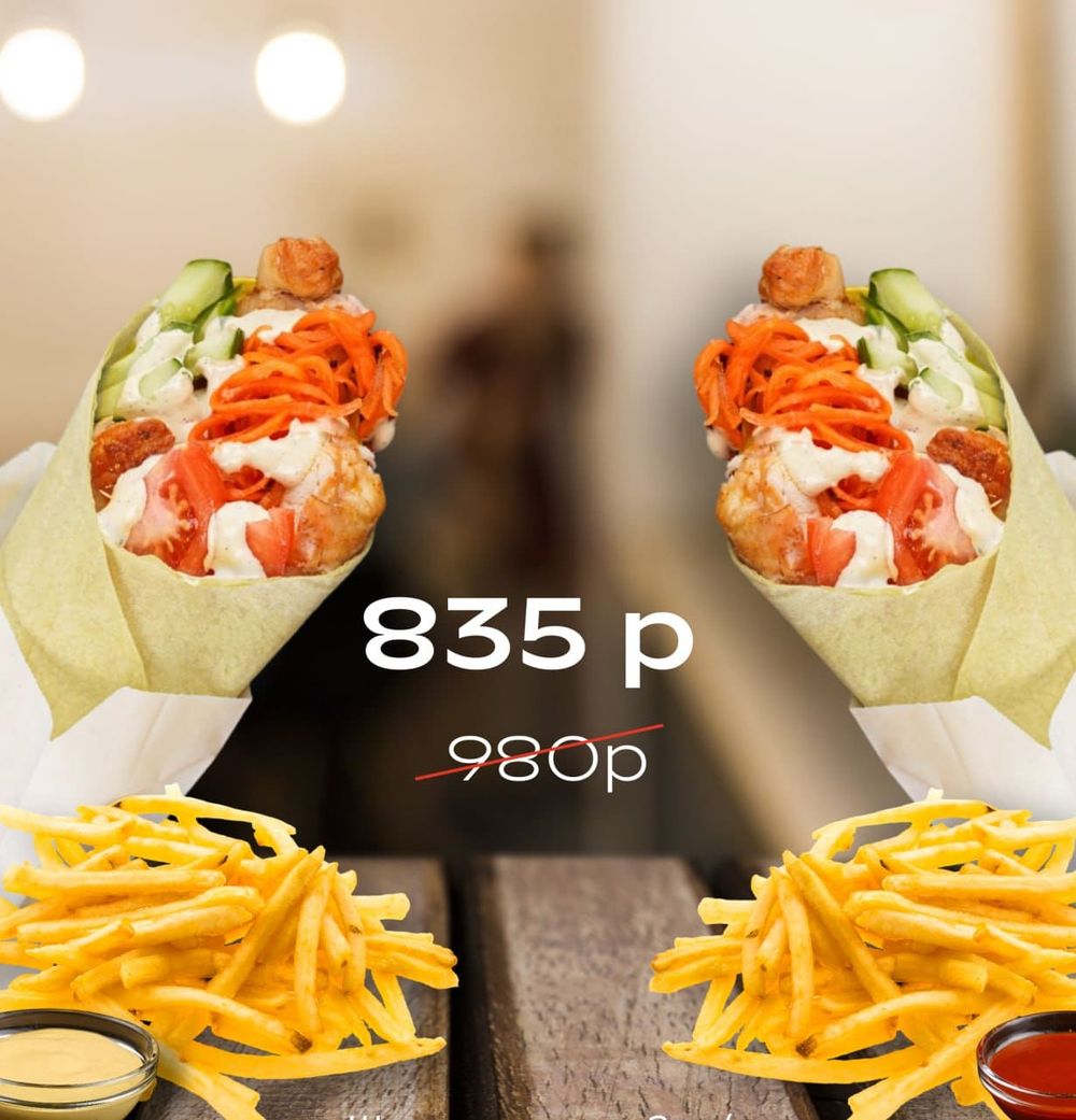 СУПЕР выгодное СУПЕР-КОМБО! - 2 классические шаурмы или 2 классические шавермы на ваш выбор, 2 картофеля фри и 2 соуса в ассортименте!